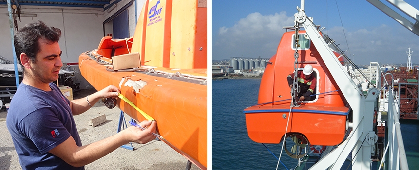 Mascyf suministra, inspecciona, y realiza las pruebas periódicas conforme a la normativa aplicable según la Organización Marítima Internacional (OMI) de los medios de puesta a flote, botes salvavidas y dispositivos de suelta certificando el estado operativo de los equipos.