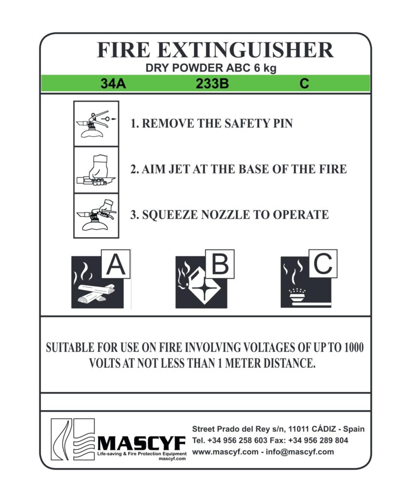 It is suitable for Class B fires under EN2 and ISO 3941 standards, and for Class B and C fires under NFPA 10.