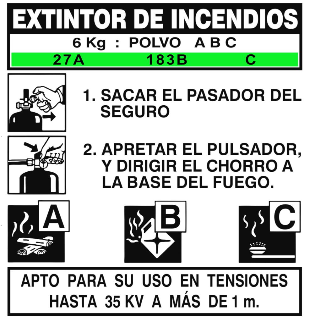 A continuación resumimos de un modo general los Agentes Extintores más utilizados en el mercado de Extintores de Incendio; sin embargo, debido a la variedad de diseños, agentes y certificaciones que existentes, es esencial que revise el etiquetado de su extintor de incendios para verificar las clases de fuego en las que se pueden aplicar, así como sus instrucciones de uso: