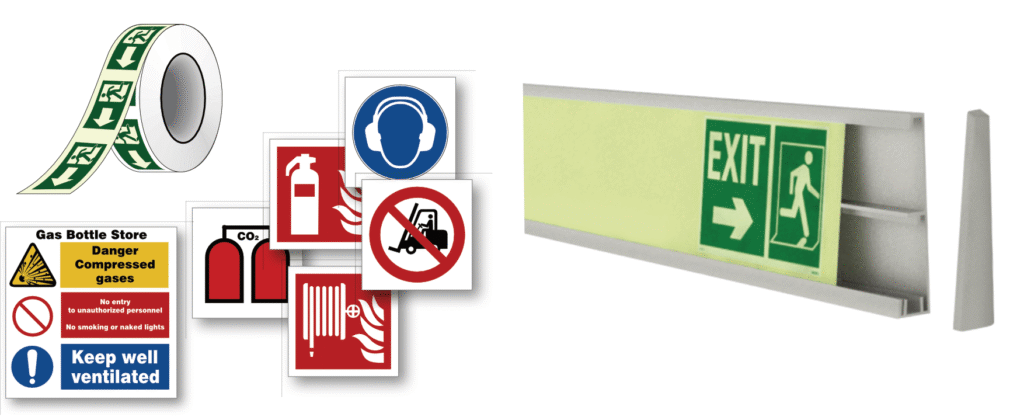 El alumbrado de evacuación a baja altura con indicadores fotoluminiscentes permite identificar las vías de evacuación en condiciones de baja visibilidad ante una caída de suministro eléctrico u otro problema de iluminación. Su uso en la industria naval está regulado por la Organización Marítima Internacional (OMI) a través del Convenio SOLAS.